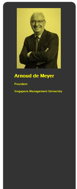 Board Member of National Research Foundation (Singapore) since 2010 and of Singapore Symphonia Company Limited since 2013. Member of the Board of Dassault Systemes, Paris since 2005. Non-Executive Director of Singapore International Chamber of Commerce and of Temasek Management Services Pte Ltd since 2010. Chair of the Scientific Advisory Committee of VITO Flemish Institute for Technological Research since 2009. Previously, Professor De Meyer has been a Non-Executive Board Member of the Management Board of the Department for Business, Enterprise and Regulatory Reform (UK) (2007-2009), a member of the Singapore Economic Review Committee (2002) and the Advisory Board of the Waseda Asia-Pacific Institute (1997-2000), and a board member of Infocomm Development Authority, Singapore (2000-2003), Sentosa Island Corporation, Singapore (2001-2002), Ancorabel, N.V., Belgium (1998-2003), the Euro-Asia Centre, Fontainebleau (1988-1992), Video Management, Belgium (1988-2000), and Terbeke International N.V. (1986-1989).